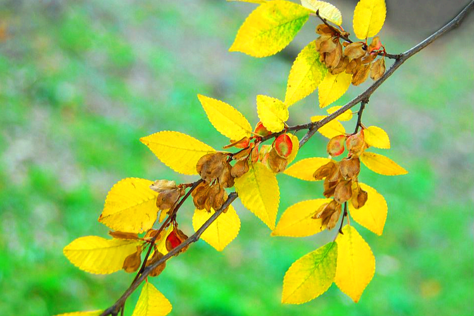 11월의 참느릅나무 열매 가장자리 붉은색 날개가