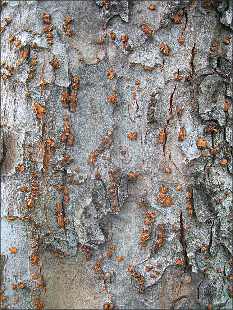 비늘조각처럼 벗겨진다. 일 년생 가지에는 털이 있다.