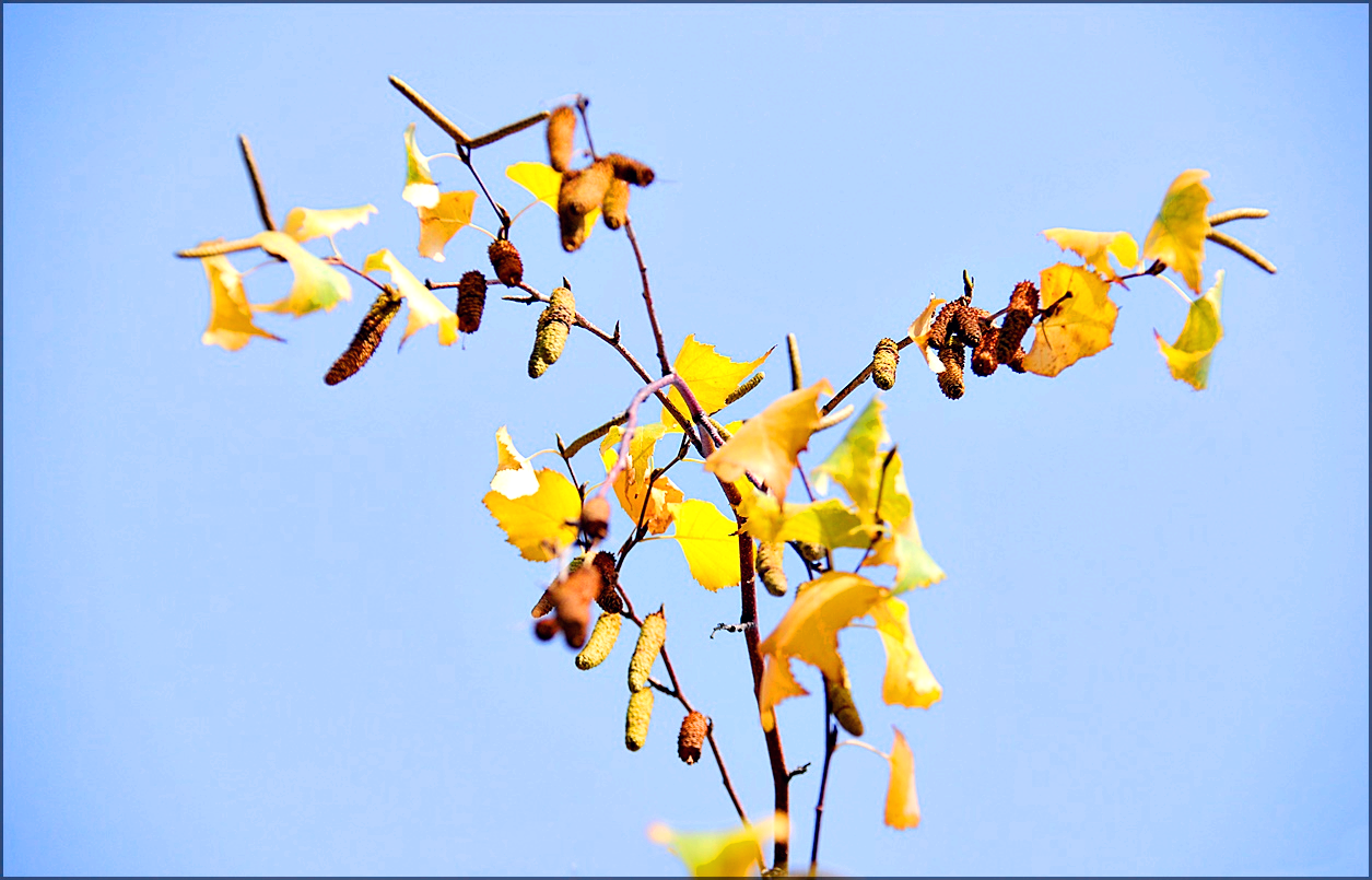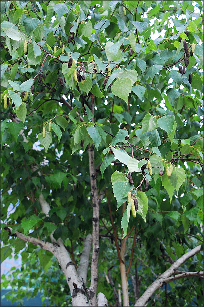 자작나무 묵은 열매도 함께 달고 있다. 잎은 줄기에 어긋나고