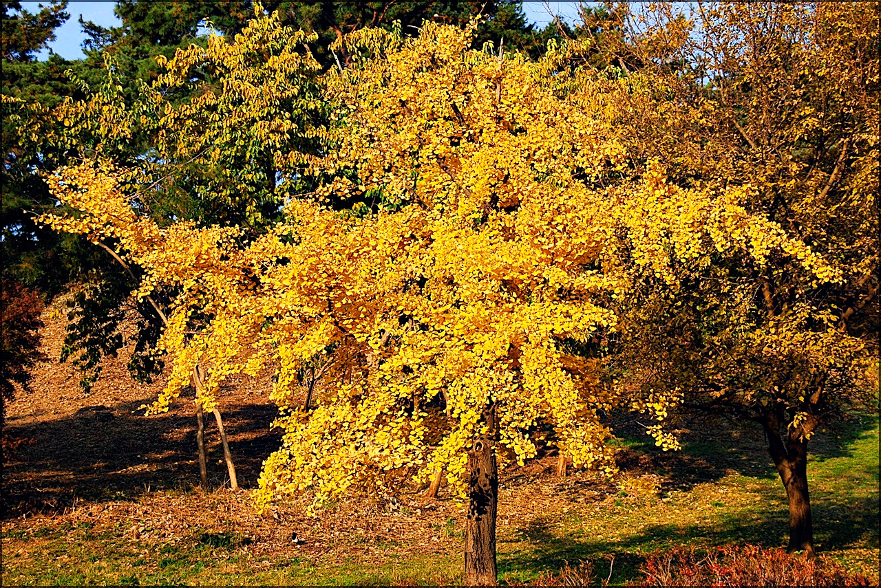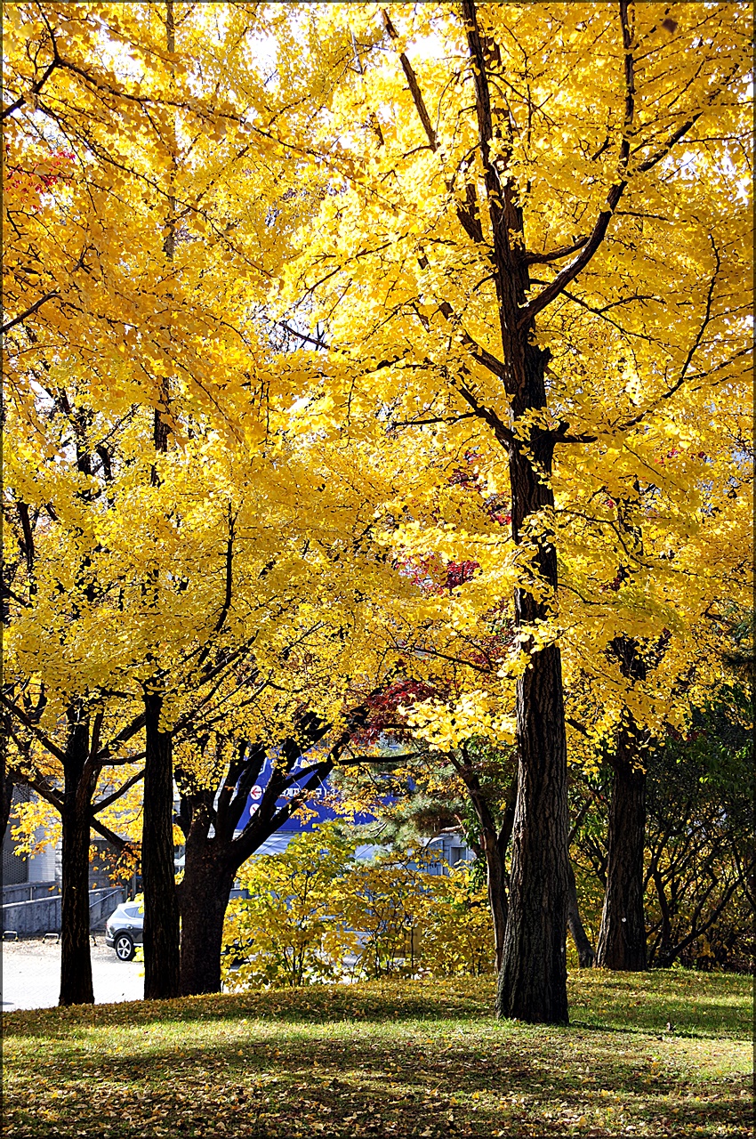 은행나무 노란색으로 단풍 든 잎은 땅에 떨어져도 예쁘지만,