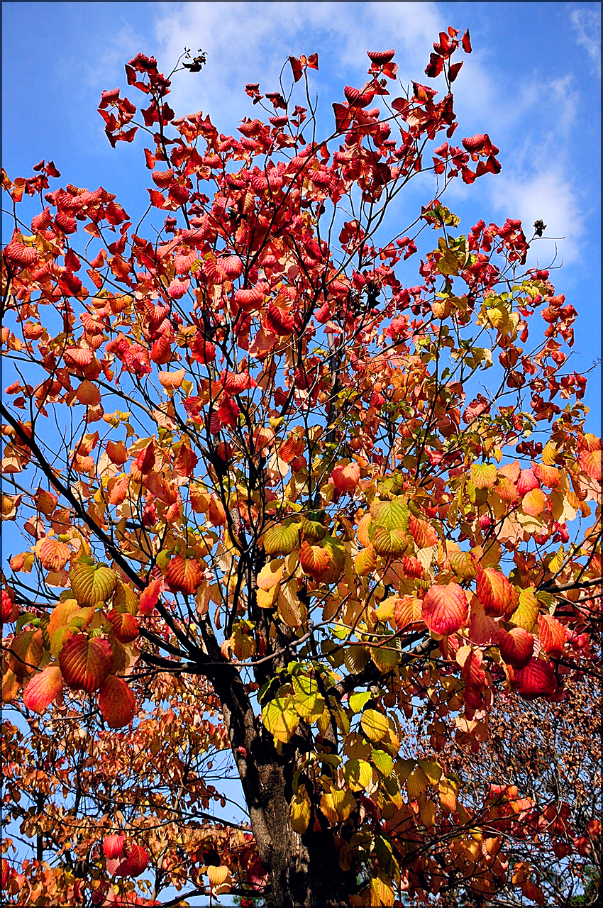 가을에 붉은색으로 변했다가 차츰 검은색으로 익는다.