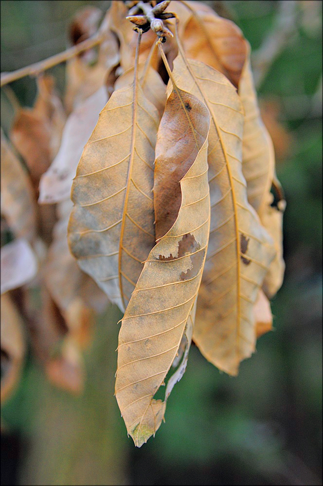 3월의 상수리나무 메마른 잎으로 잎
