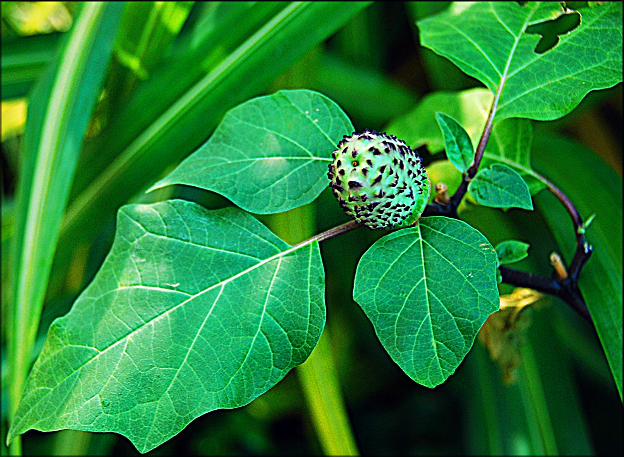 열대아시아 원산의 귀화식물로 잎을 만다엽이라 하며 유독식물이다.