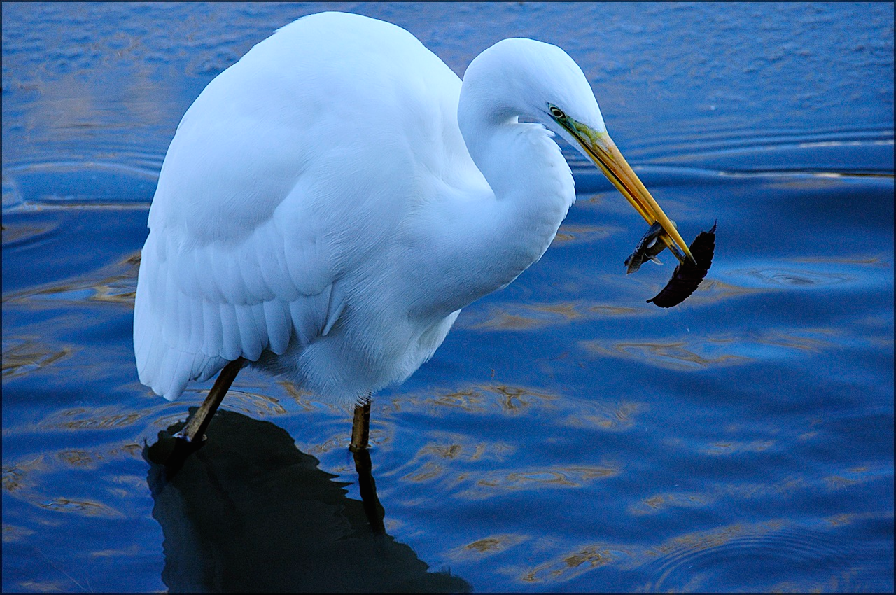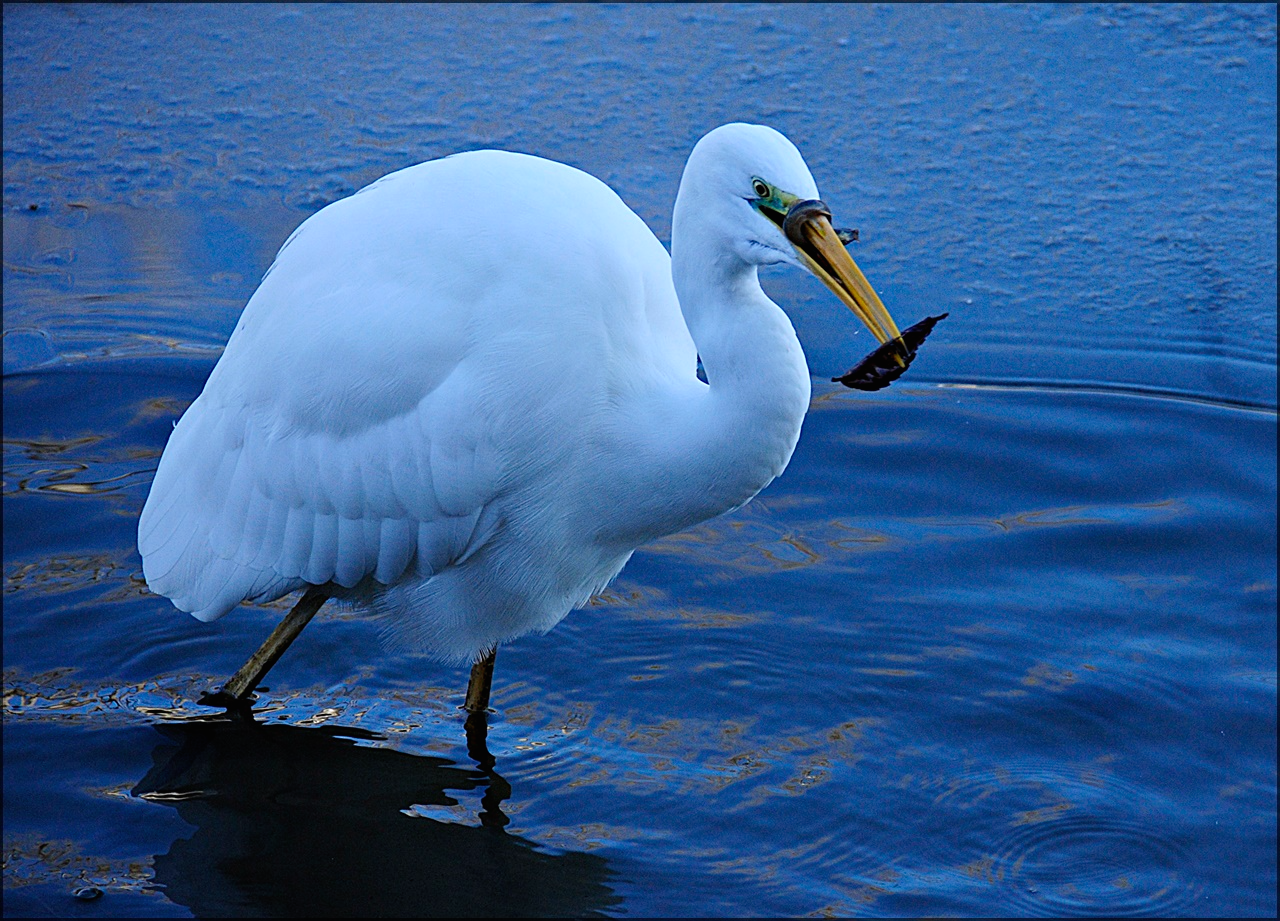 하천 변 중대백로의 집중력으로 결국 먹이사냥에 성공하는데,