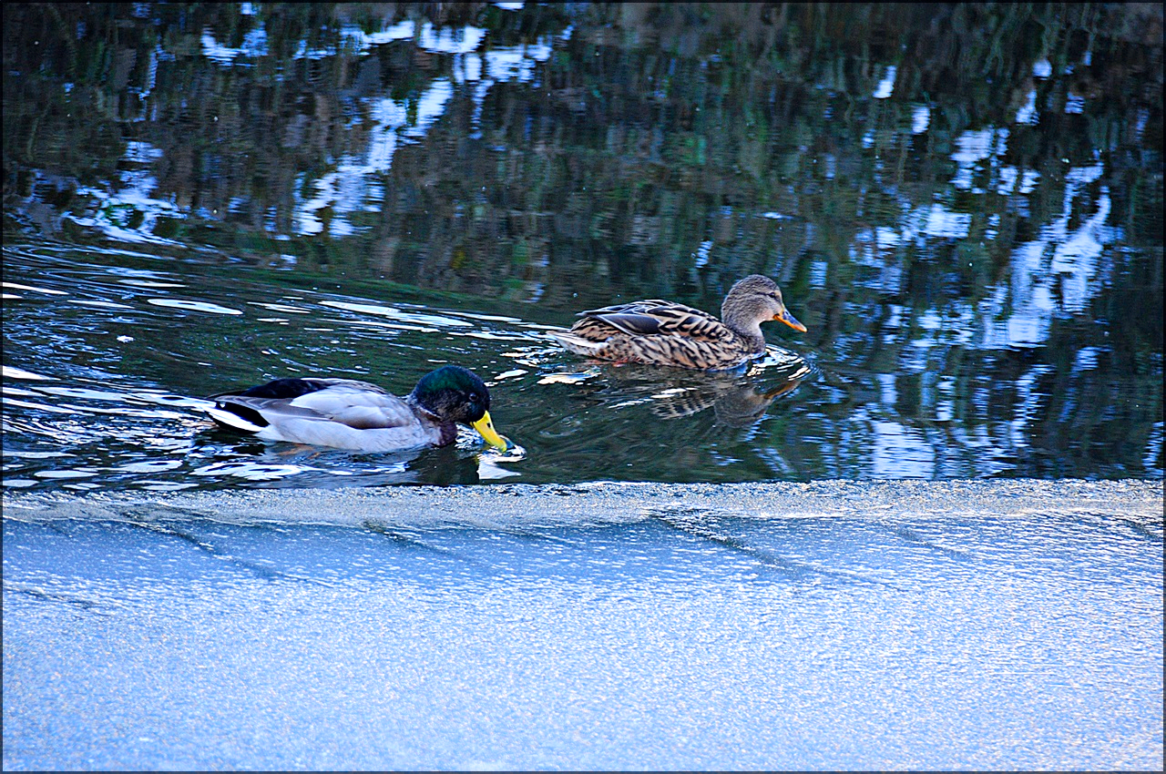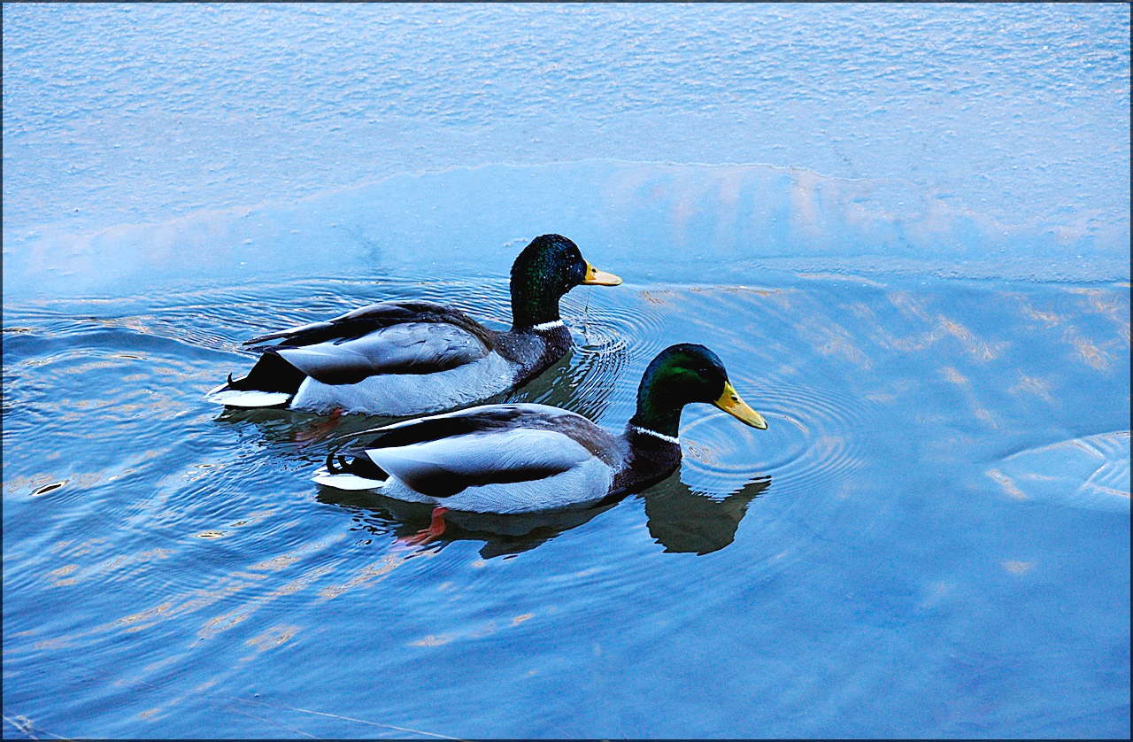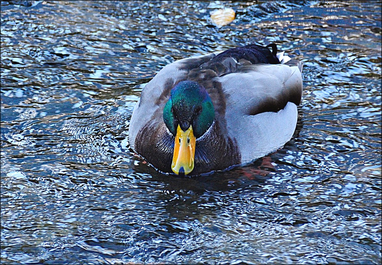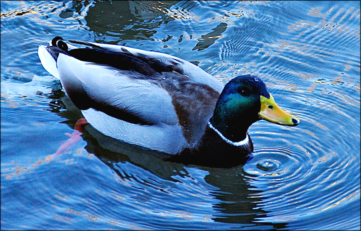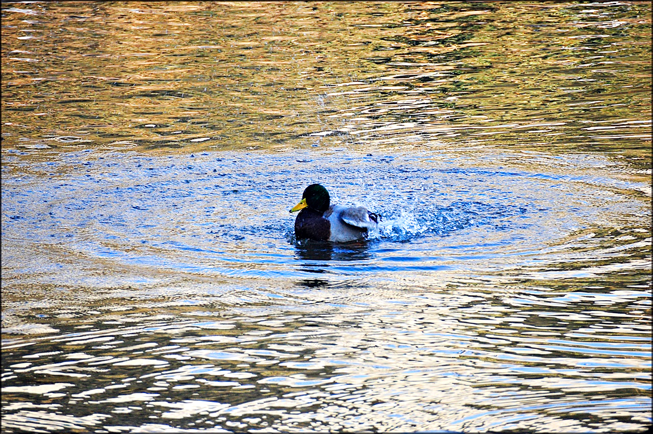 청둥오리 수컷으로 겨울 철새이자 텃새로 수컷은 깃털이 암컷과는