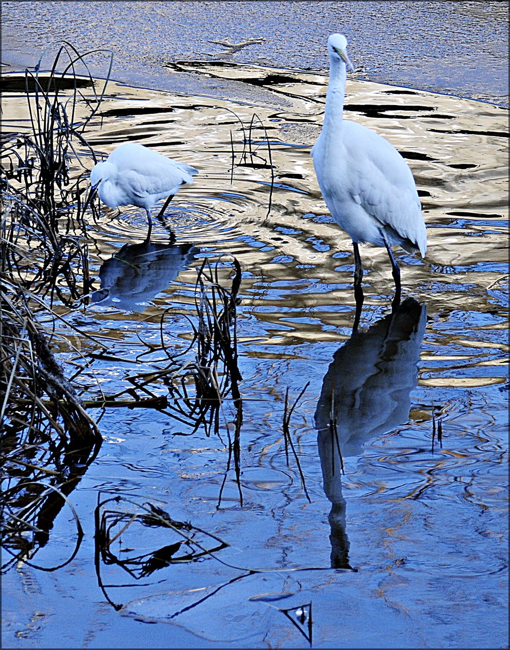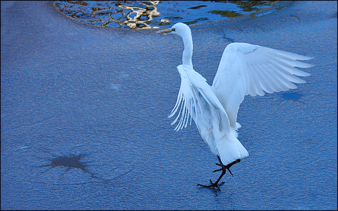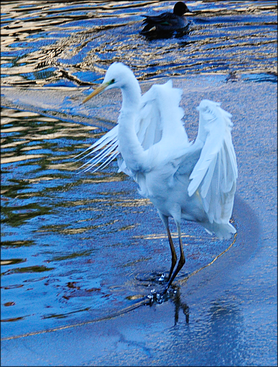사냥감이 있는 곳에서는 중대백로 양보는 없는 듯, 청둥오리는