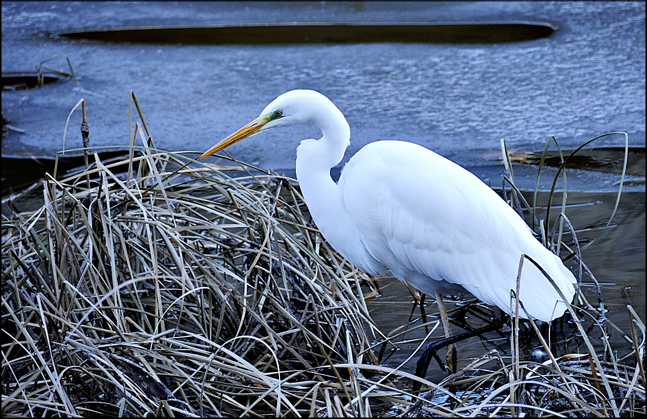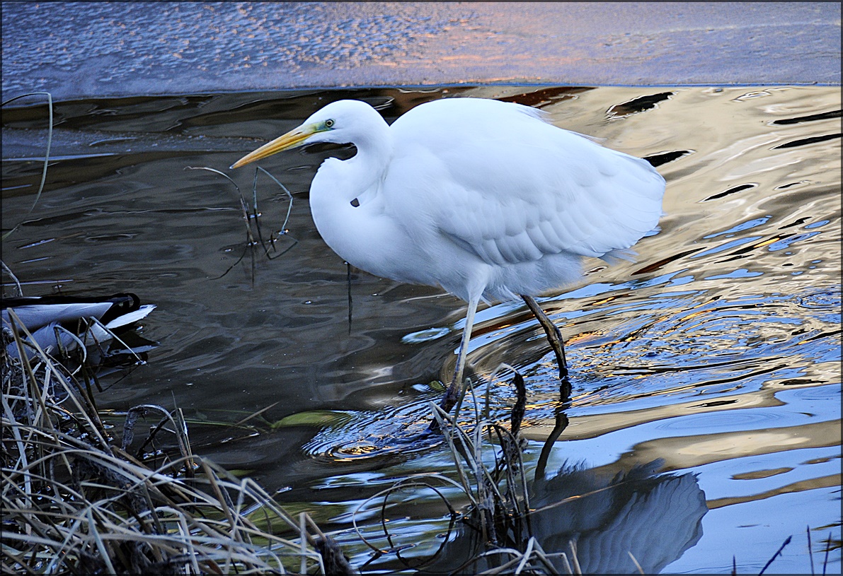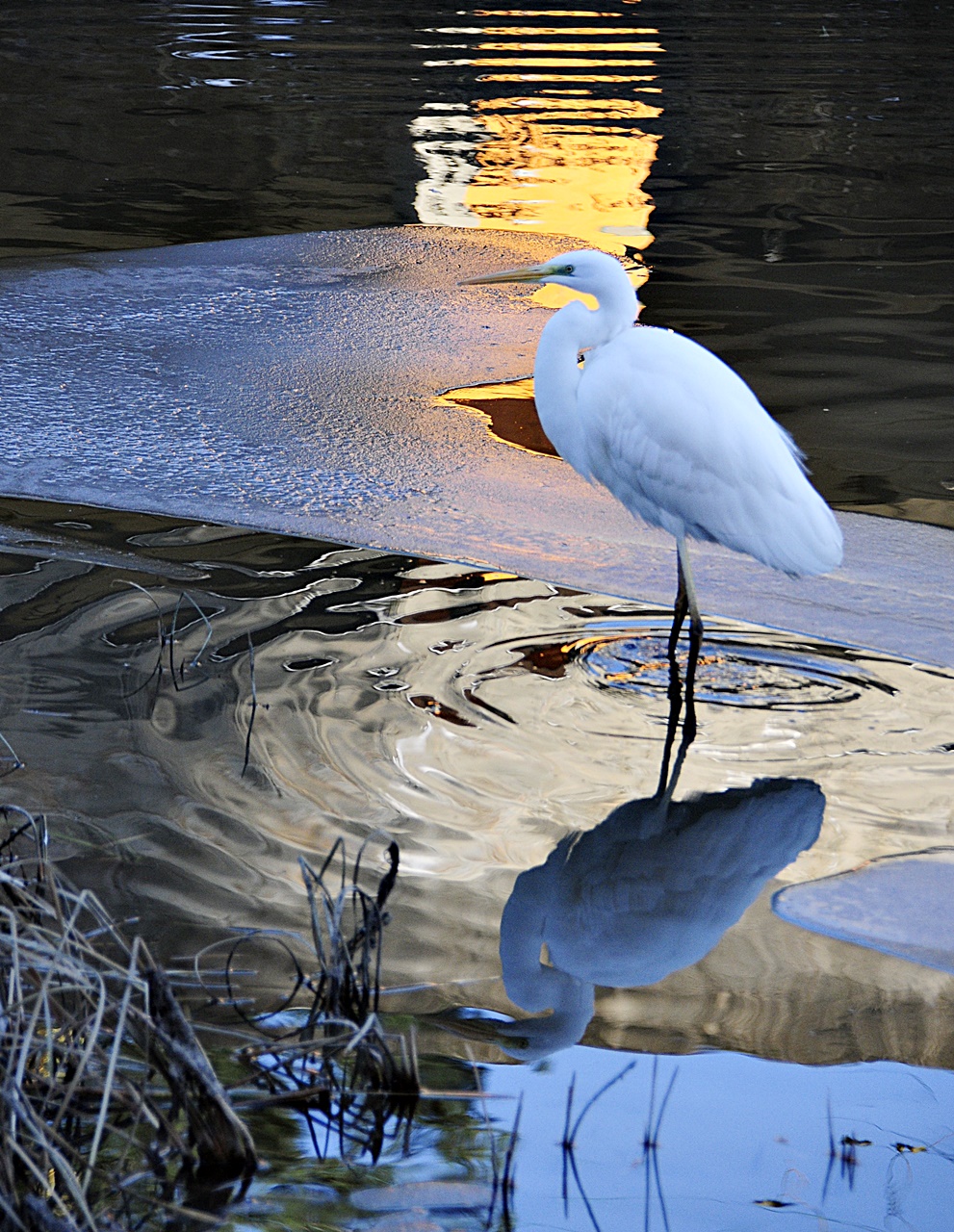 사냥감이 있는 곳에서는 중대백로 양보는 없는 듯, 청둥오리는