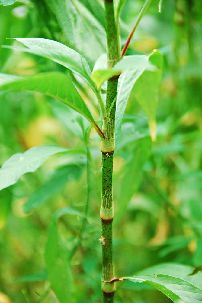 마디가 굵으며 붉은빛이 돌고 검은빛이
