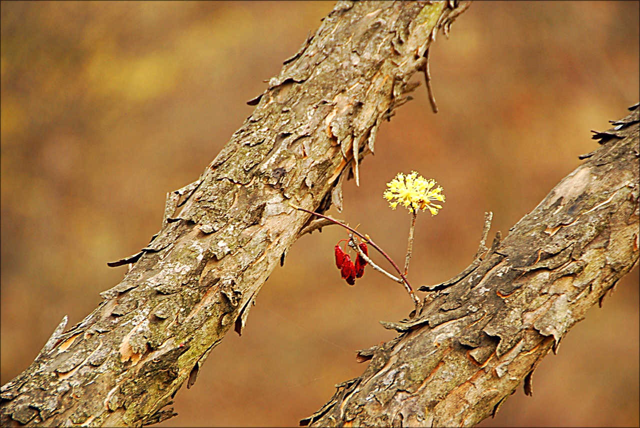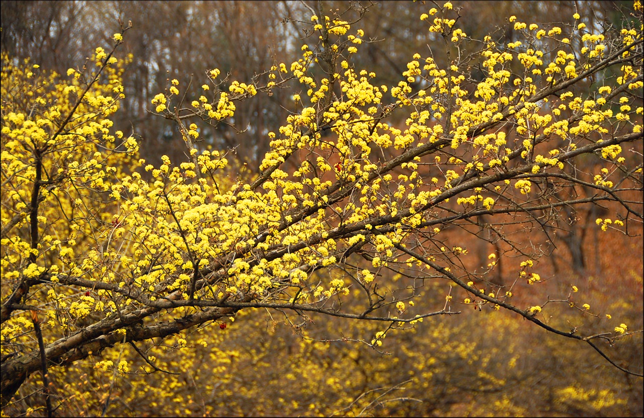 양평 주을읍 산수유로 꽃 반 열매 반이다.