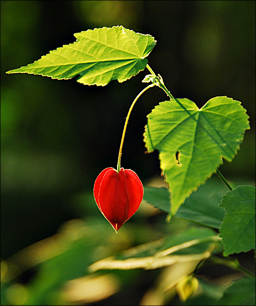 붉은색으로 풍선처럼 부푼 꽃받침잎이 꽃잎과 함께