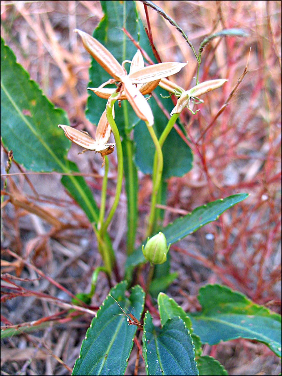 종자가 튀어 나가고 빈 열매껍질만이 남아 있다.