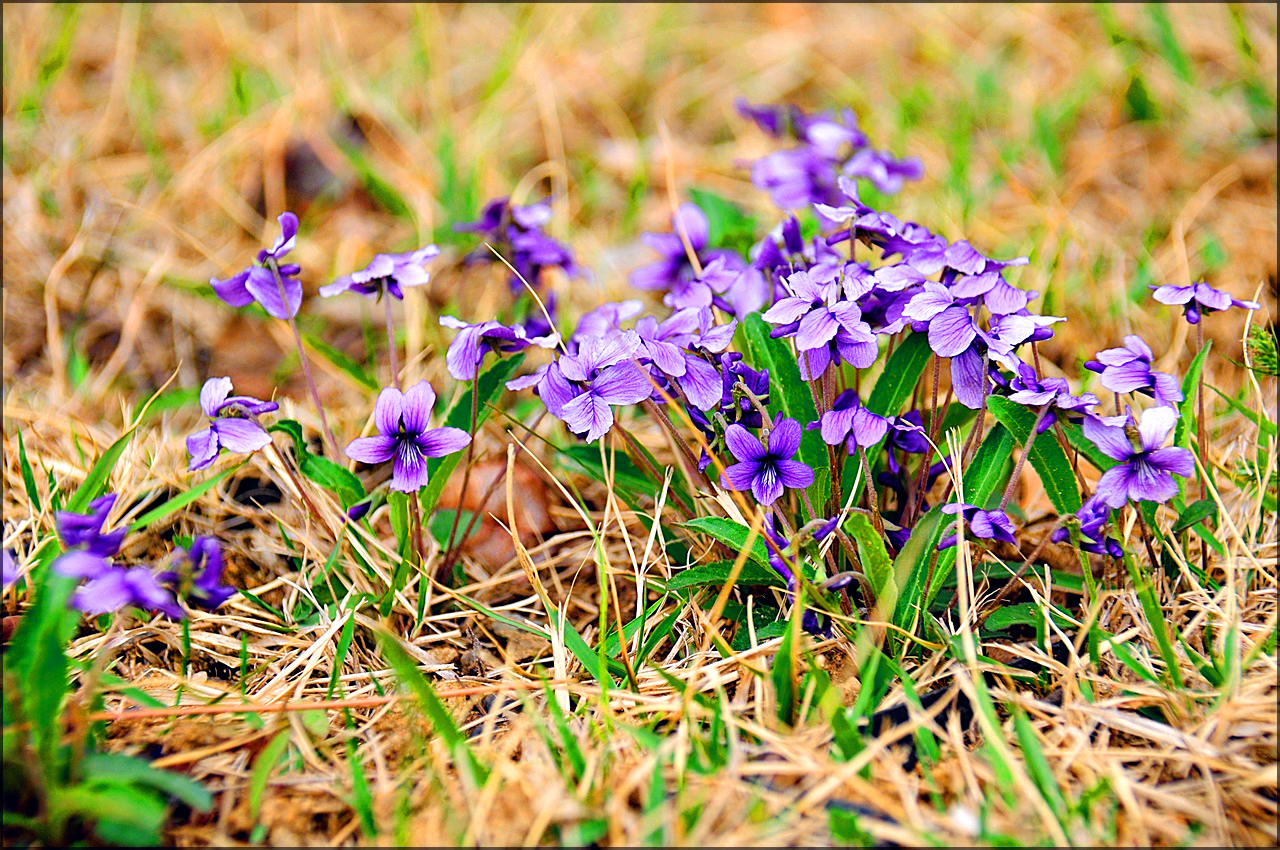 군락을 이룬 제비꽃으로 양지바른 건조한 곳이나 길가 풀밭에서