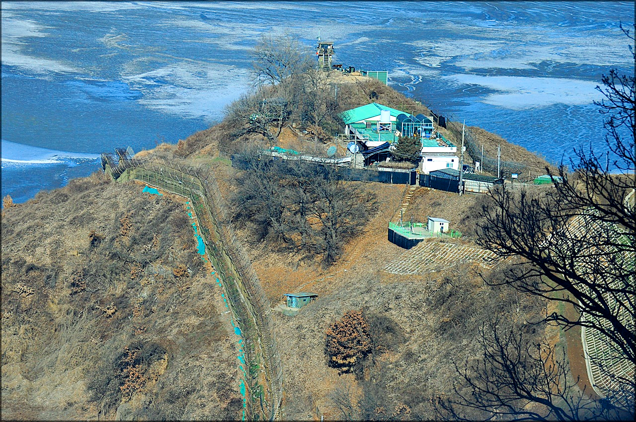 강 건너 북한땅과 우리 초소가 한눈에 들어온다.