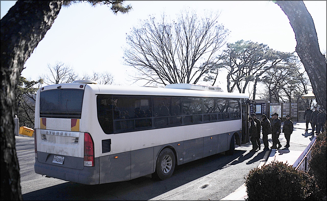 군인들도 버스 두 대에 나눠 타고 통일전망대를
