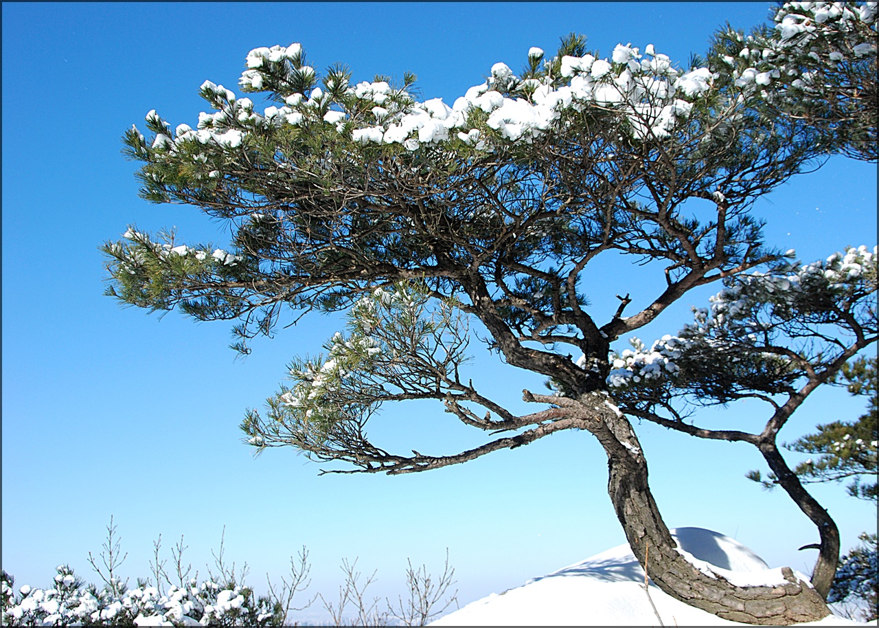노간주나무와 소나무의 콜라보다.