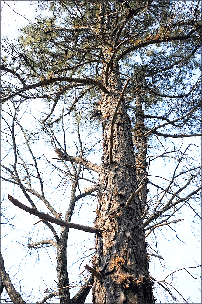 리기다소나무로 원산지는 북아메리카이며 수피는 적갈색이며