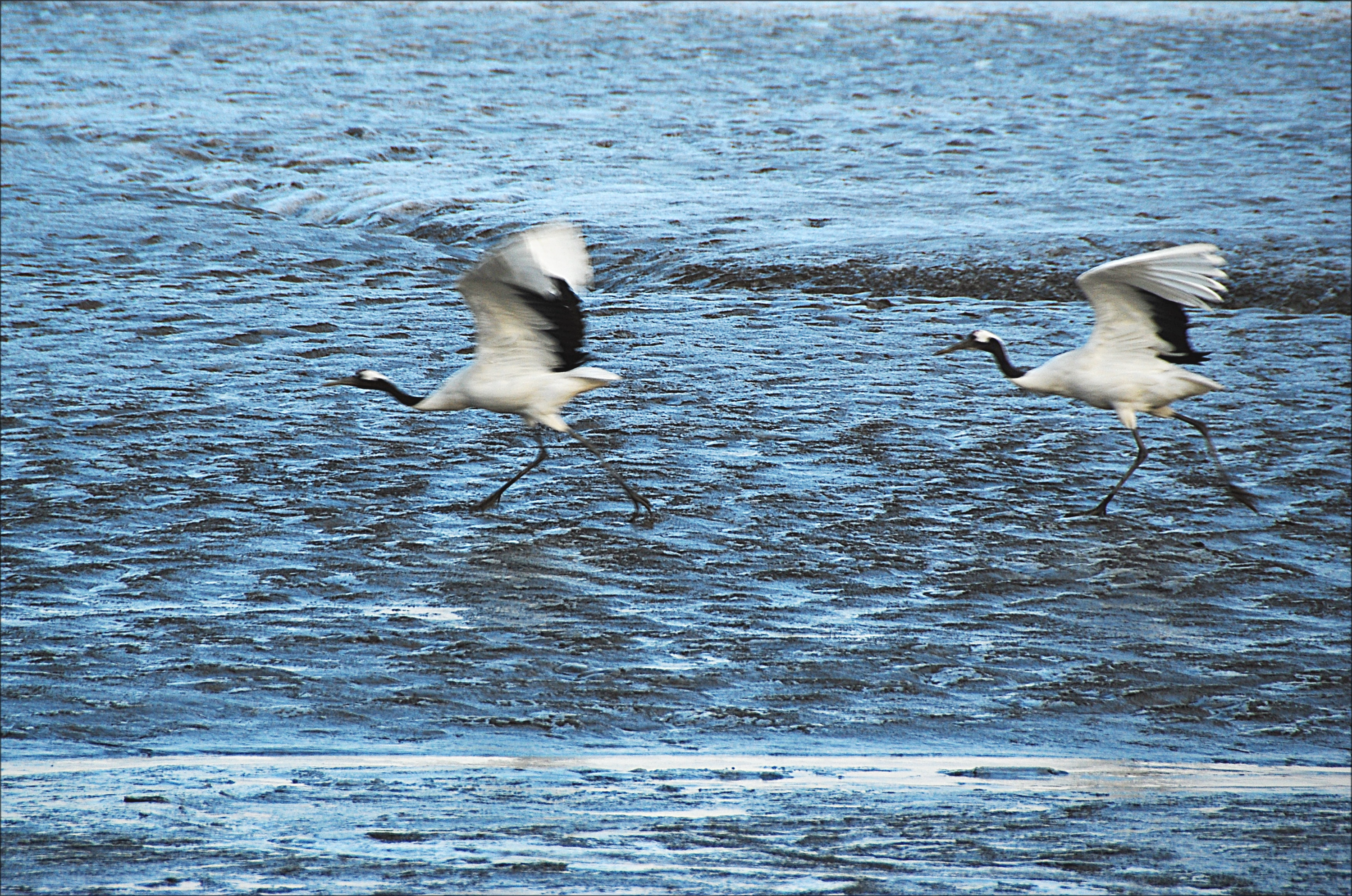 12월의 강화도의 두루미로 10월 하순부터 많은 무리의 두루미떼가 겨울을 난다.