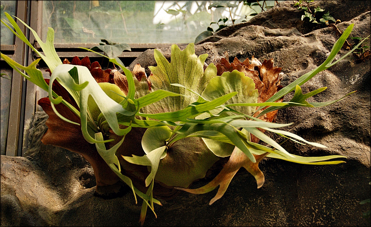 사슴뿔 모양으로 잎의 뒷면에 포자가 달려 있는데 익으면 갈색이 된다.