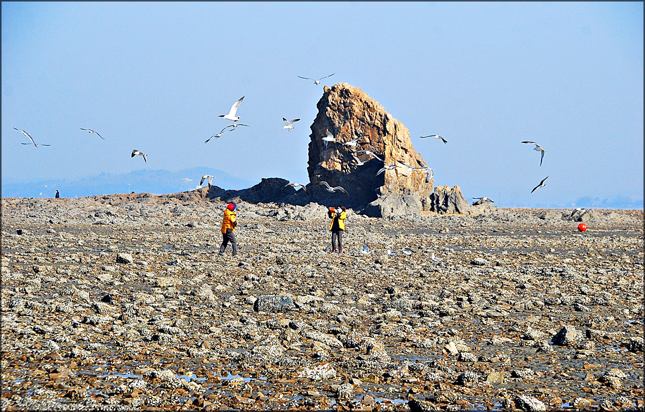 물론 사람들도 걸어서 섬까지 들어갈 수 있는 곳으로 물 떼만