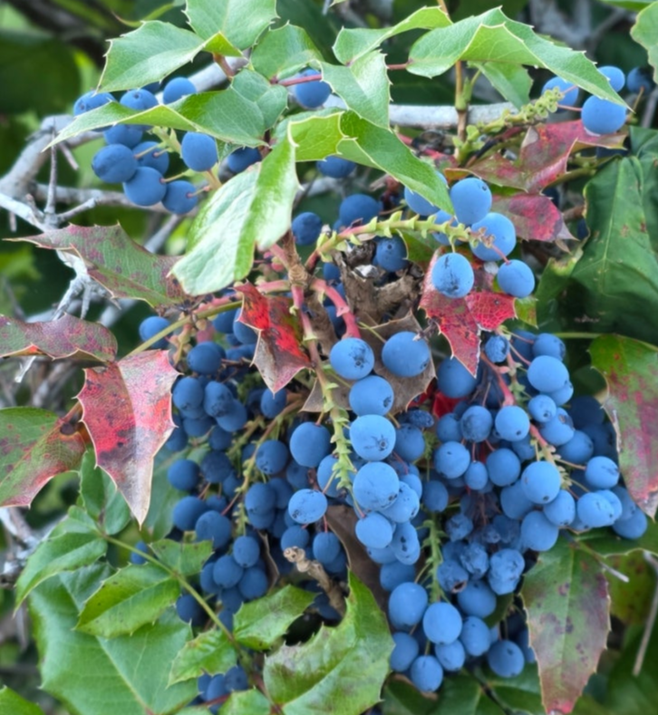 열매는 장과로 둥글고 흑자색으로 7월에 익으며 흰 가루로 덮인다.
