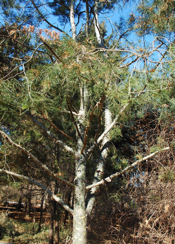 백송으로 나무껍질은 밋밋하고, 흰색과