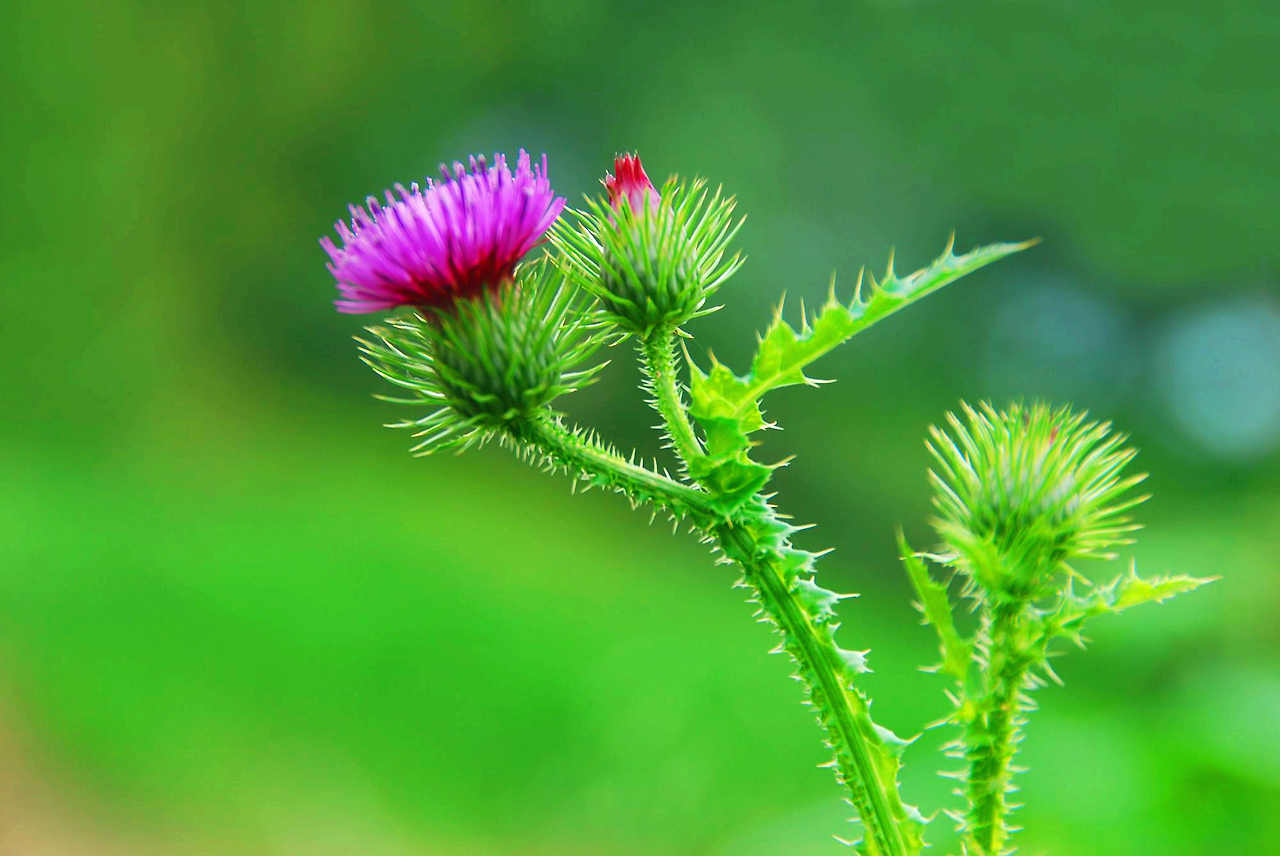 지느러미엉겅퀴로 꽃은 6~8월에 가지 끝마다 엉겅퀴
