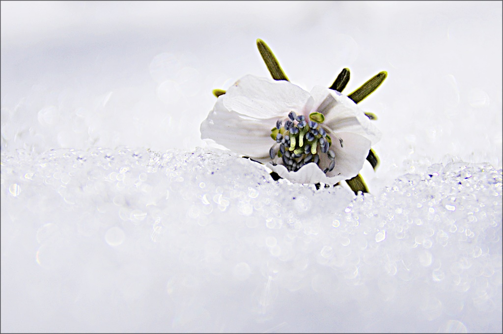 24년도 수리산 2월의 같은 장소 눈 속 변산바람꽃이다.