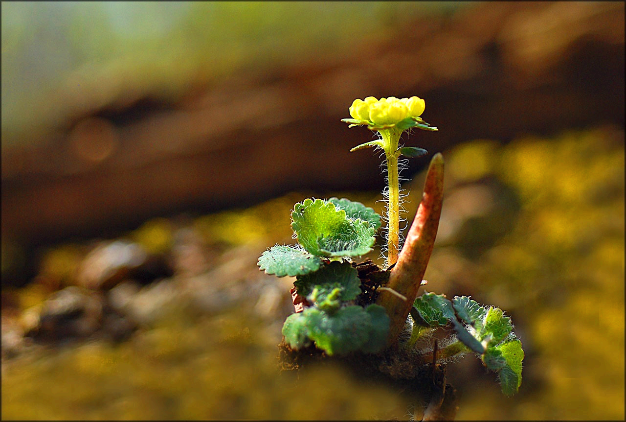 하천을 건너려다 흰털괭이눈을 만나는데 조금 산만한