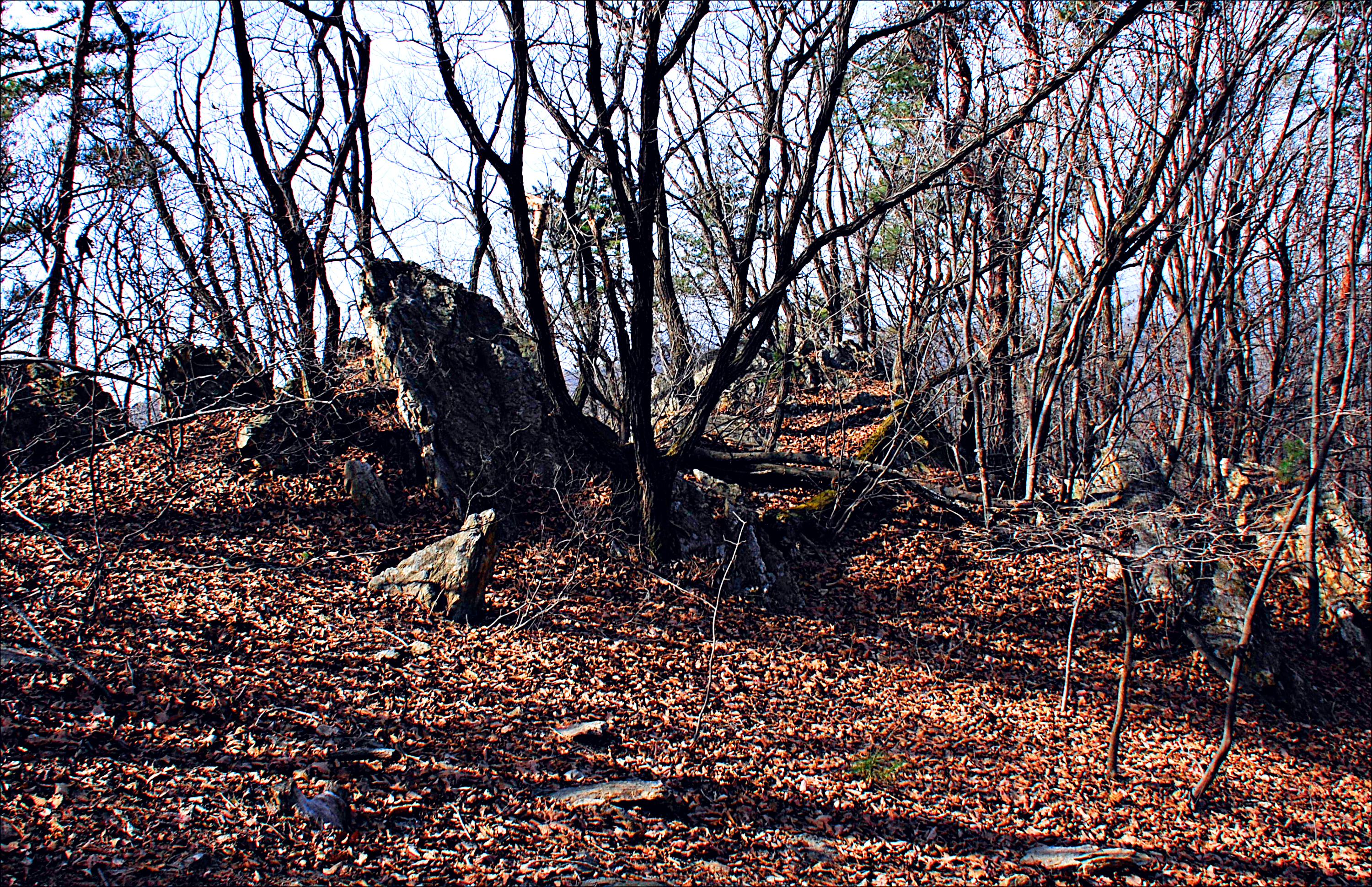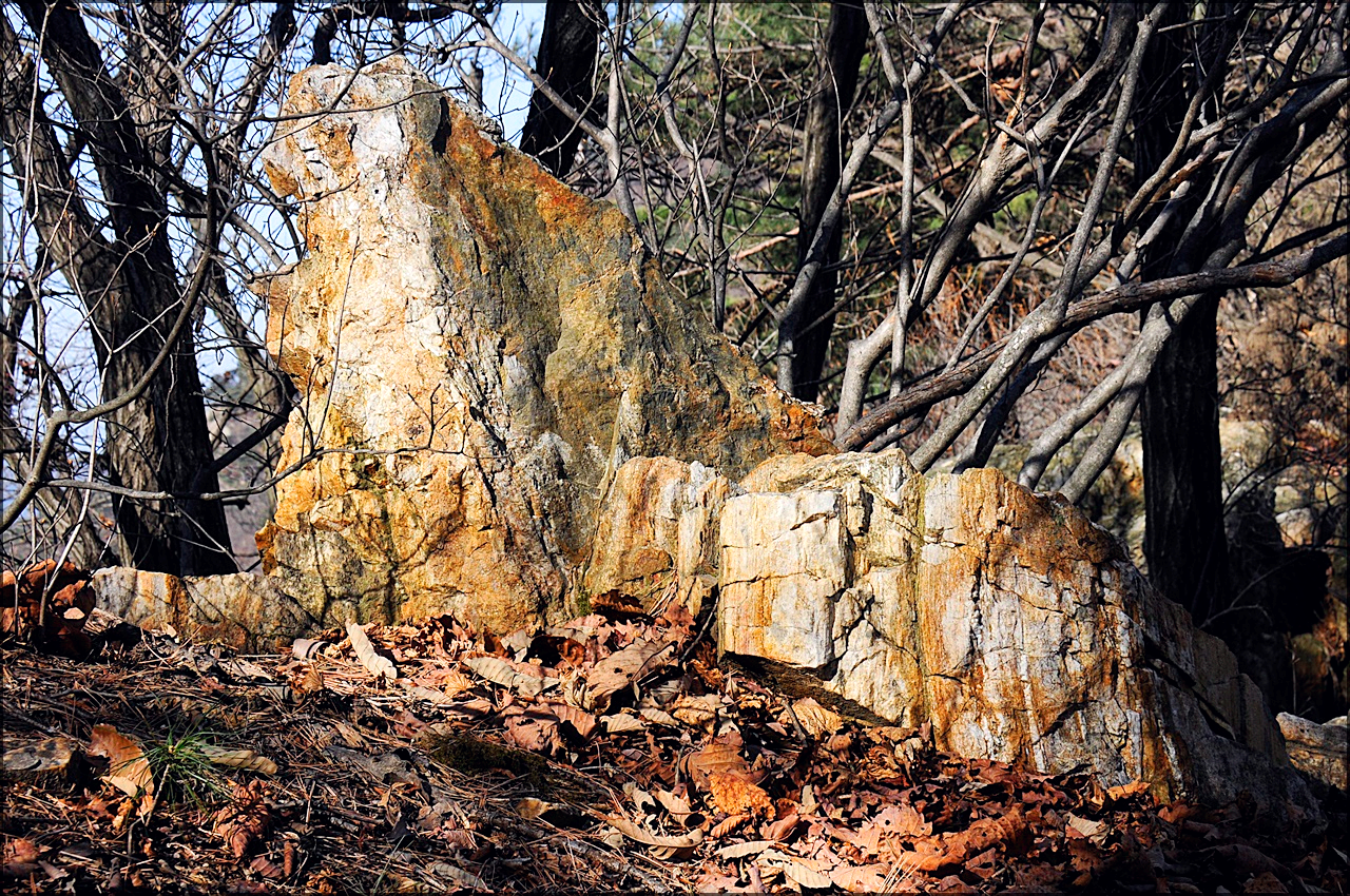 바위와 잘 어울리는 누군가의 솜씨 발휘 흔적들