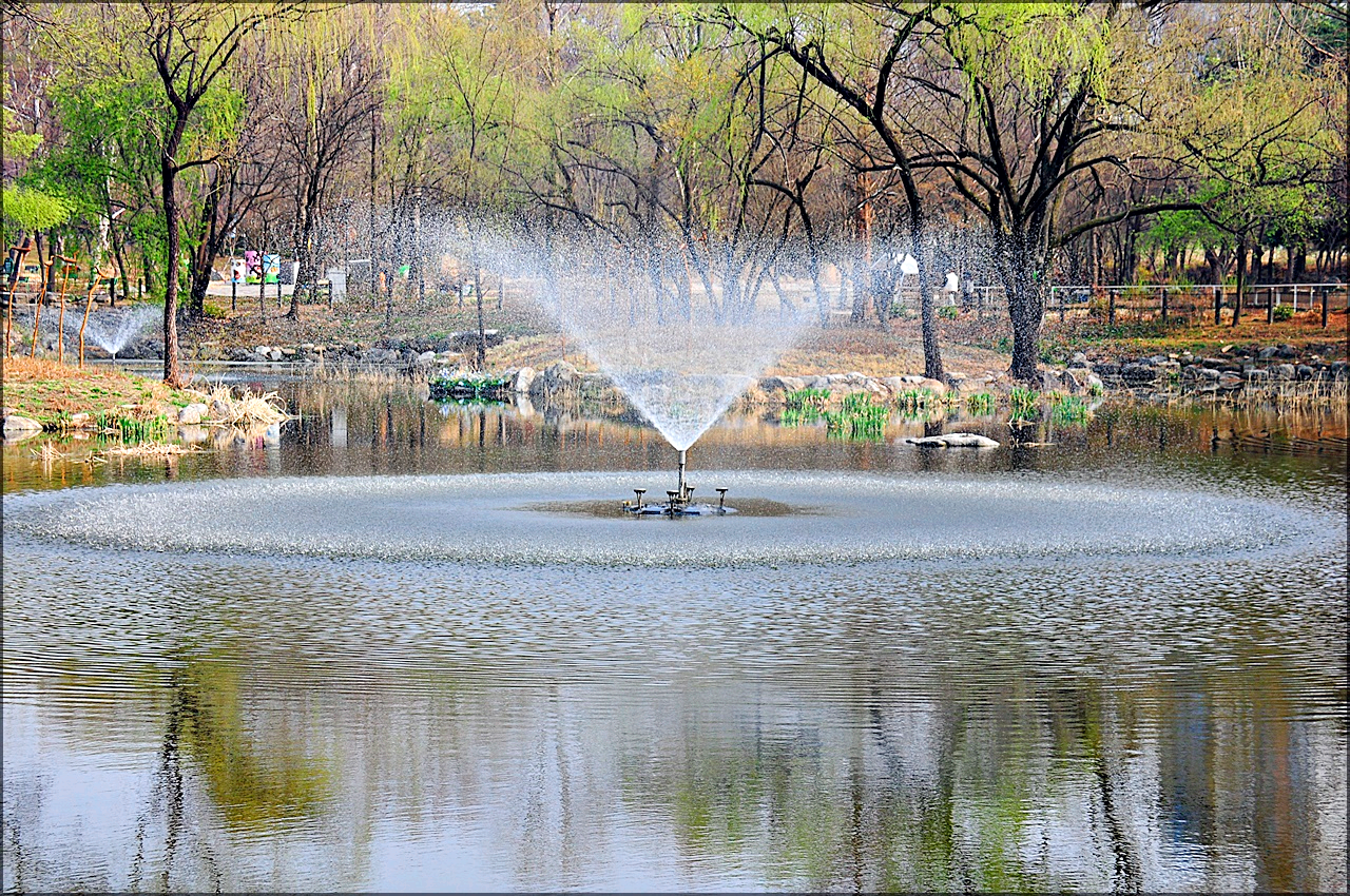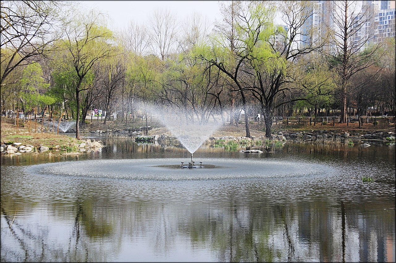 살짝 더운 날씨 힘차게 내뿜는 분수대