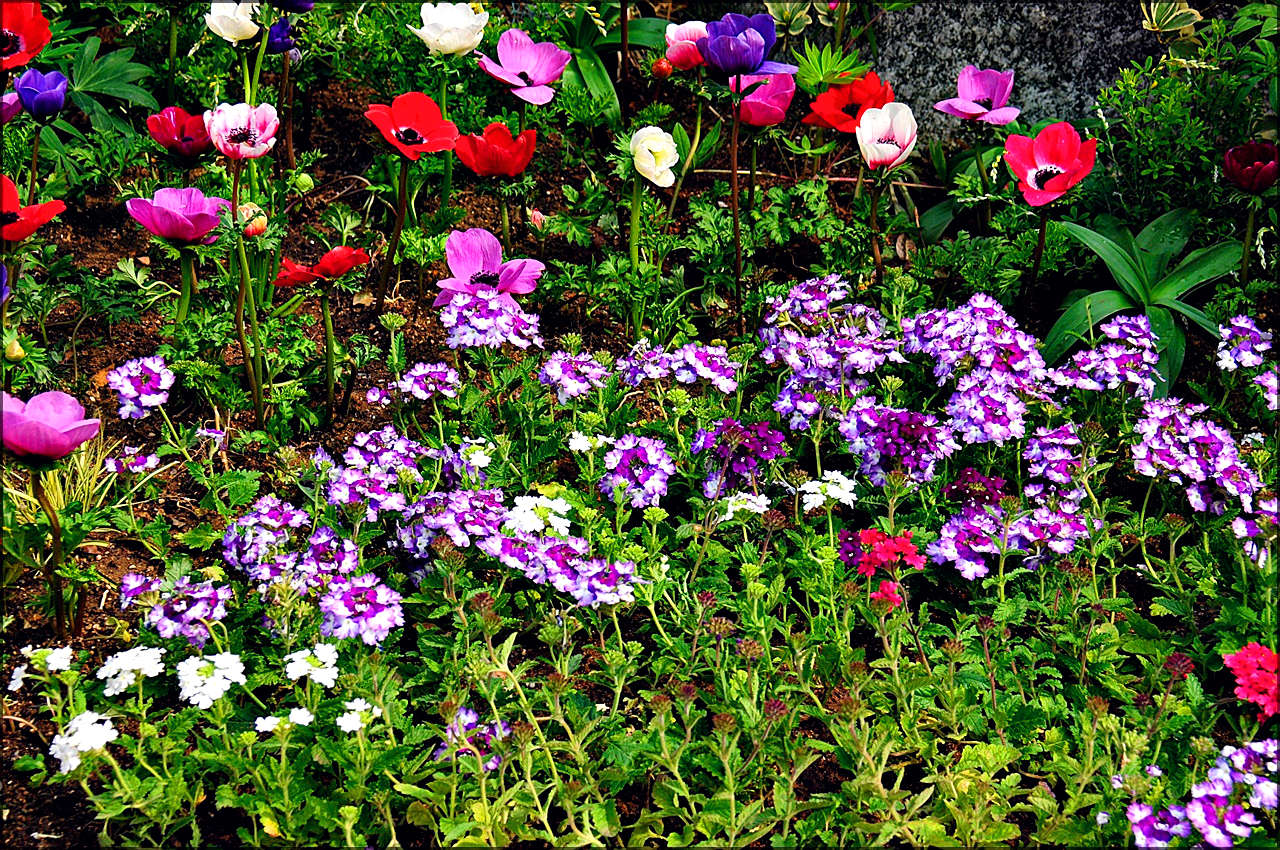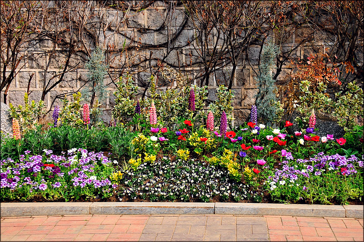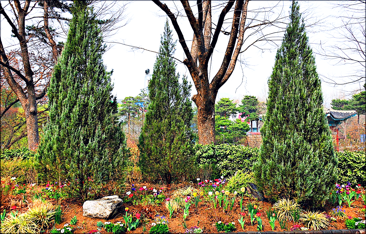 갖가지 예쁜 꽃들이 환영인사를 한다.