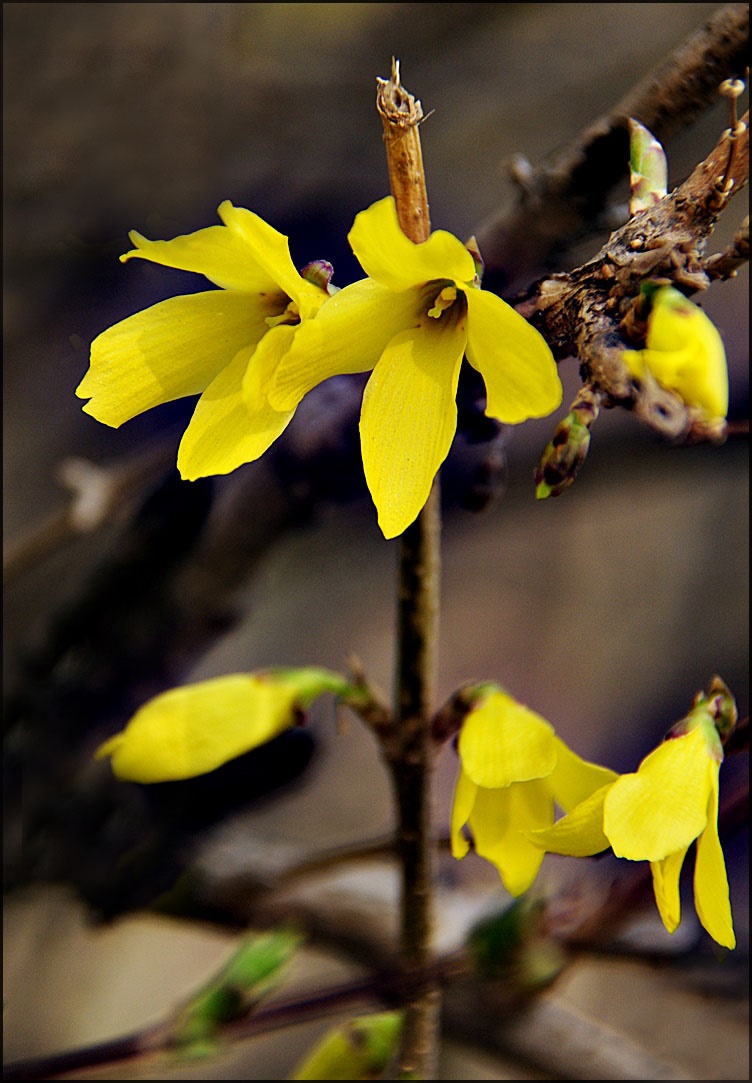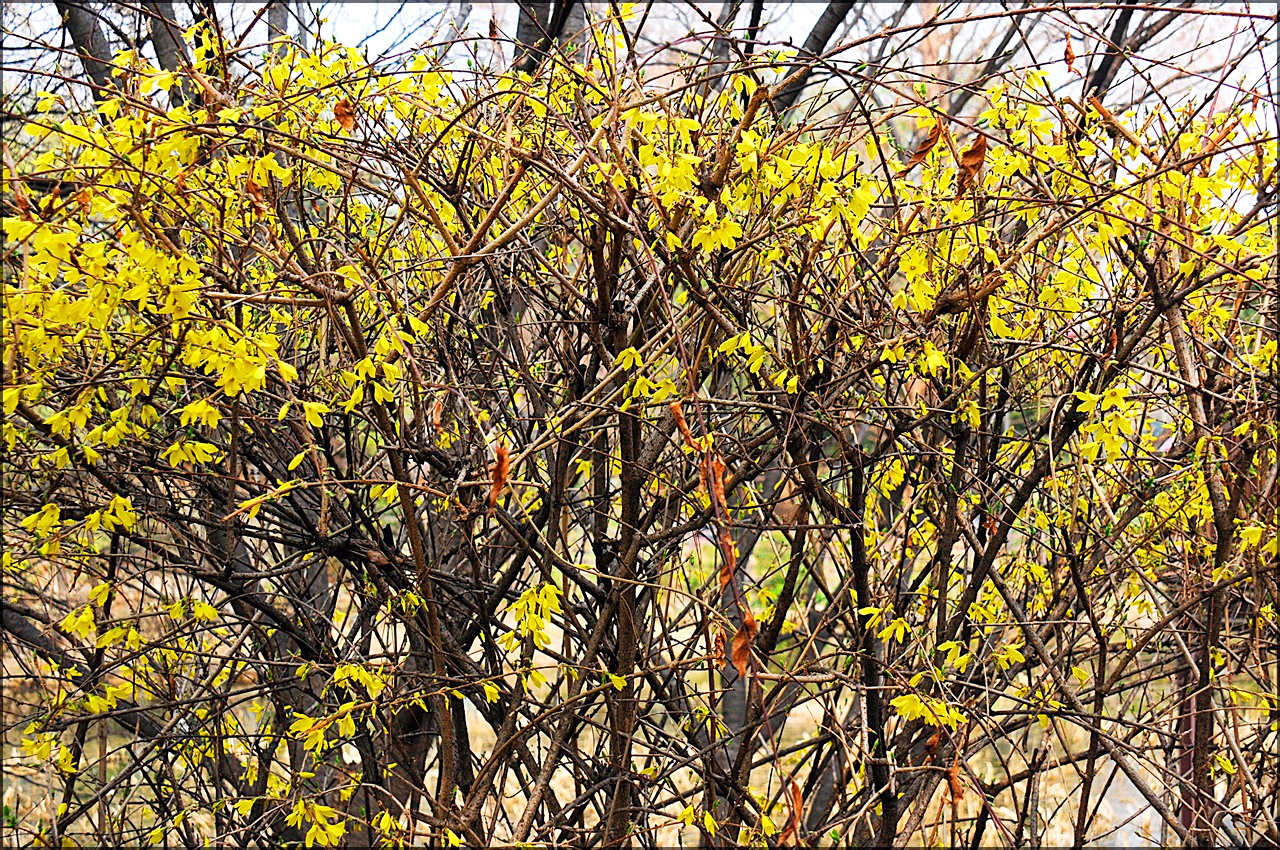 개나리는 암수딴그루로 암꽃으로 안쪽에 퇴화한 수술 2개가 있다.