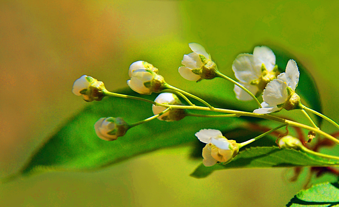 귀룽나무 꽃으로 꽃받침과 꽃잎은 각각 5개씩이다.