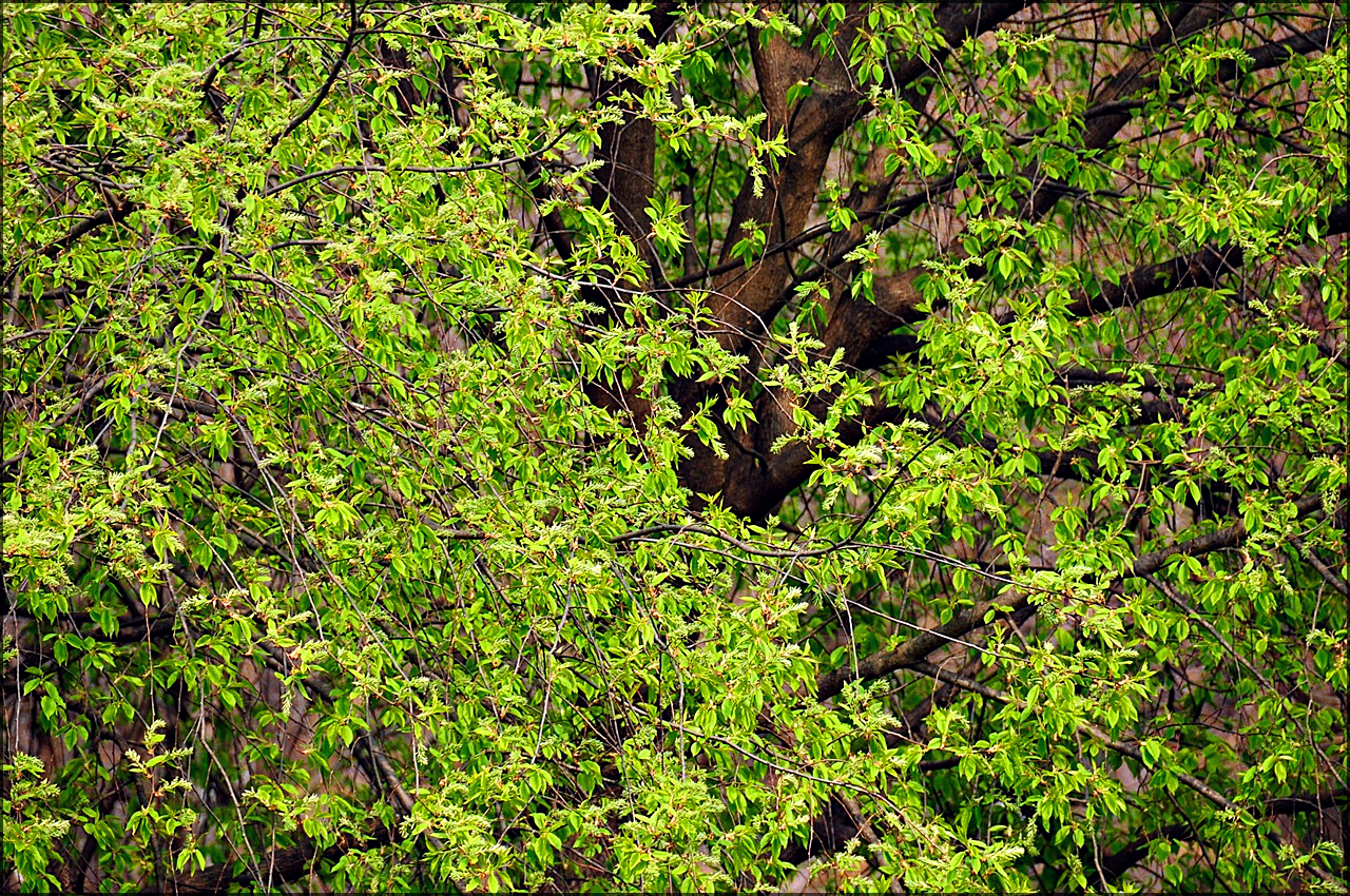 3월 초 귀룽나무 잎이 나오고 있다.