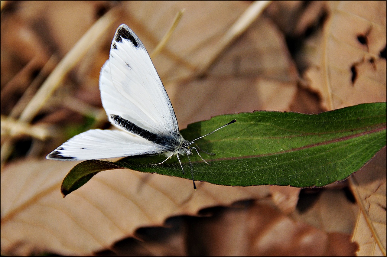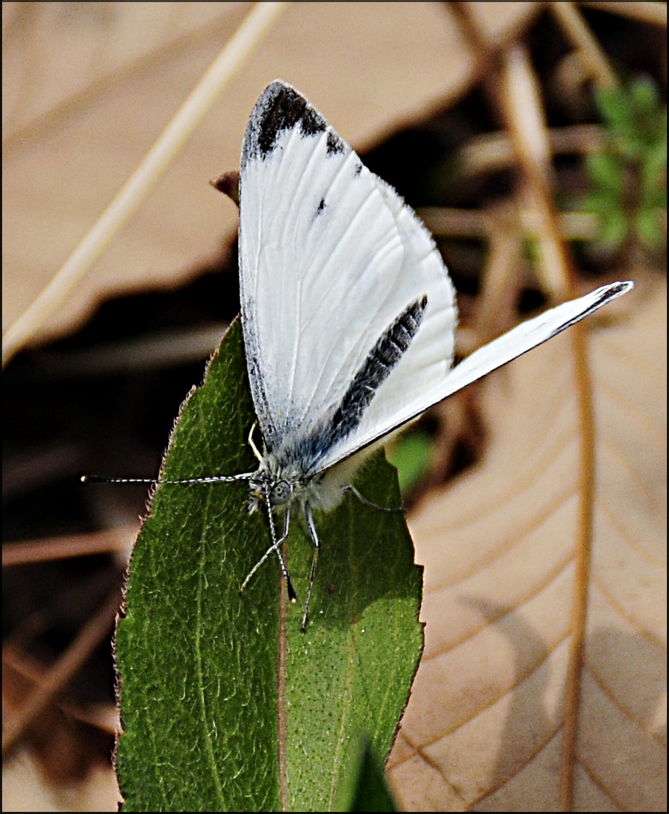 대만흰나비수컷으로 날개 바탕은 흰색이며 앞날개 끝부분에 검은색