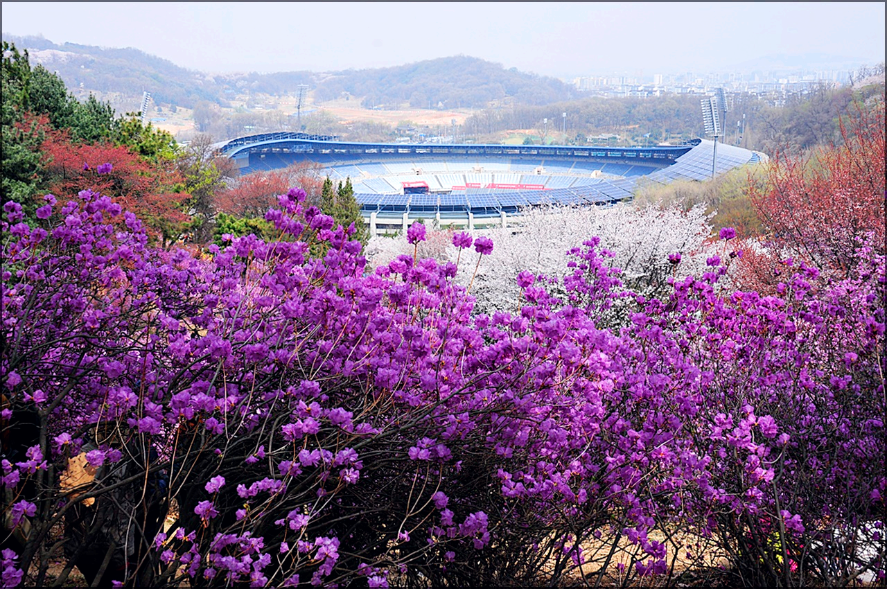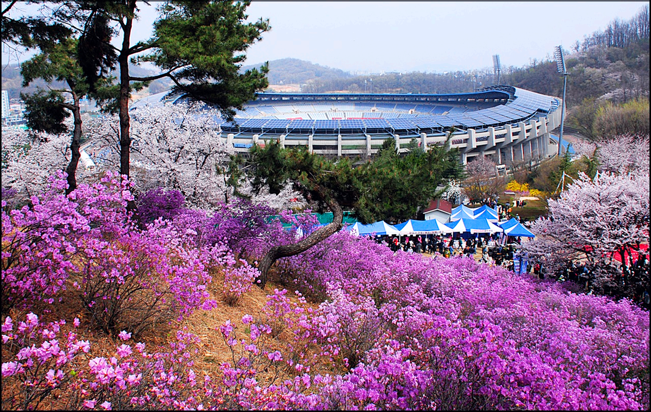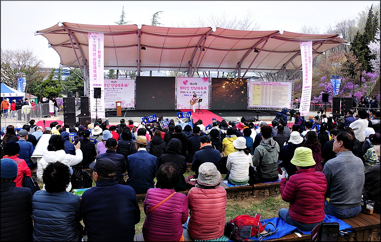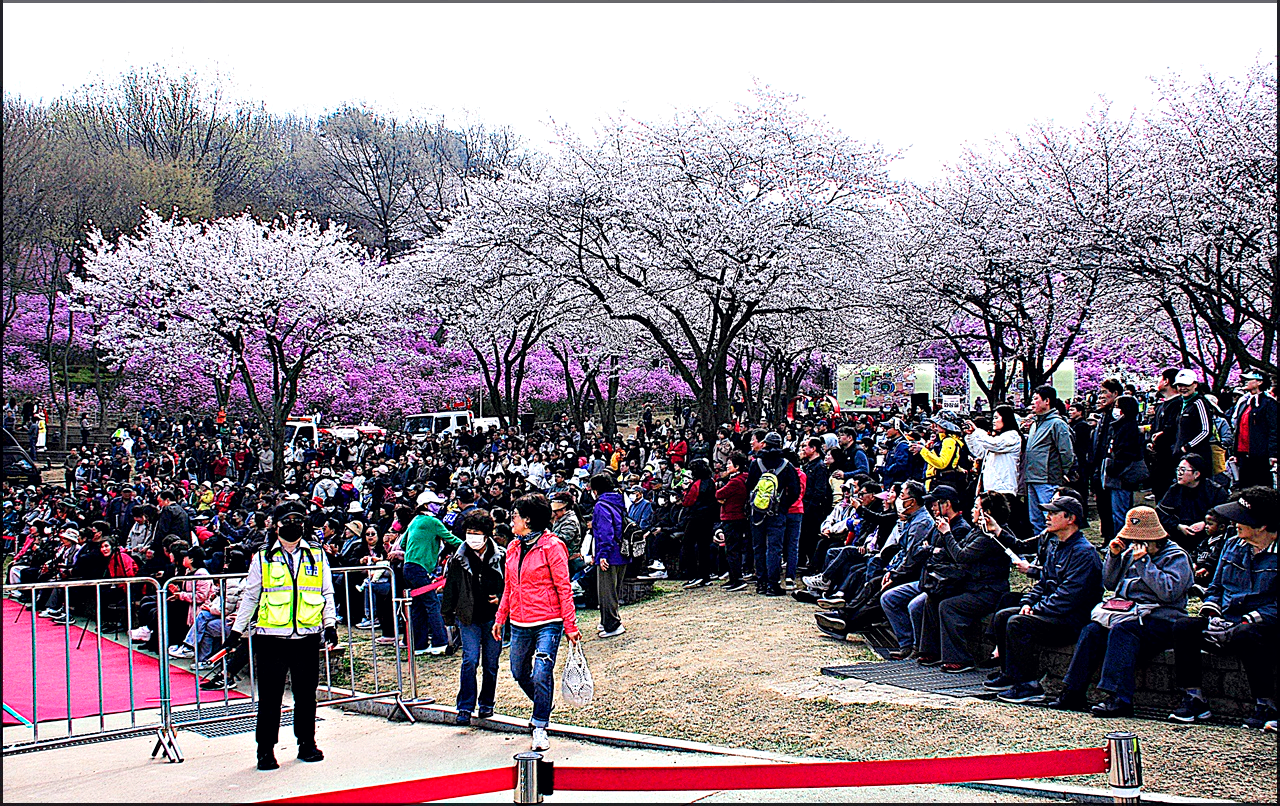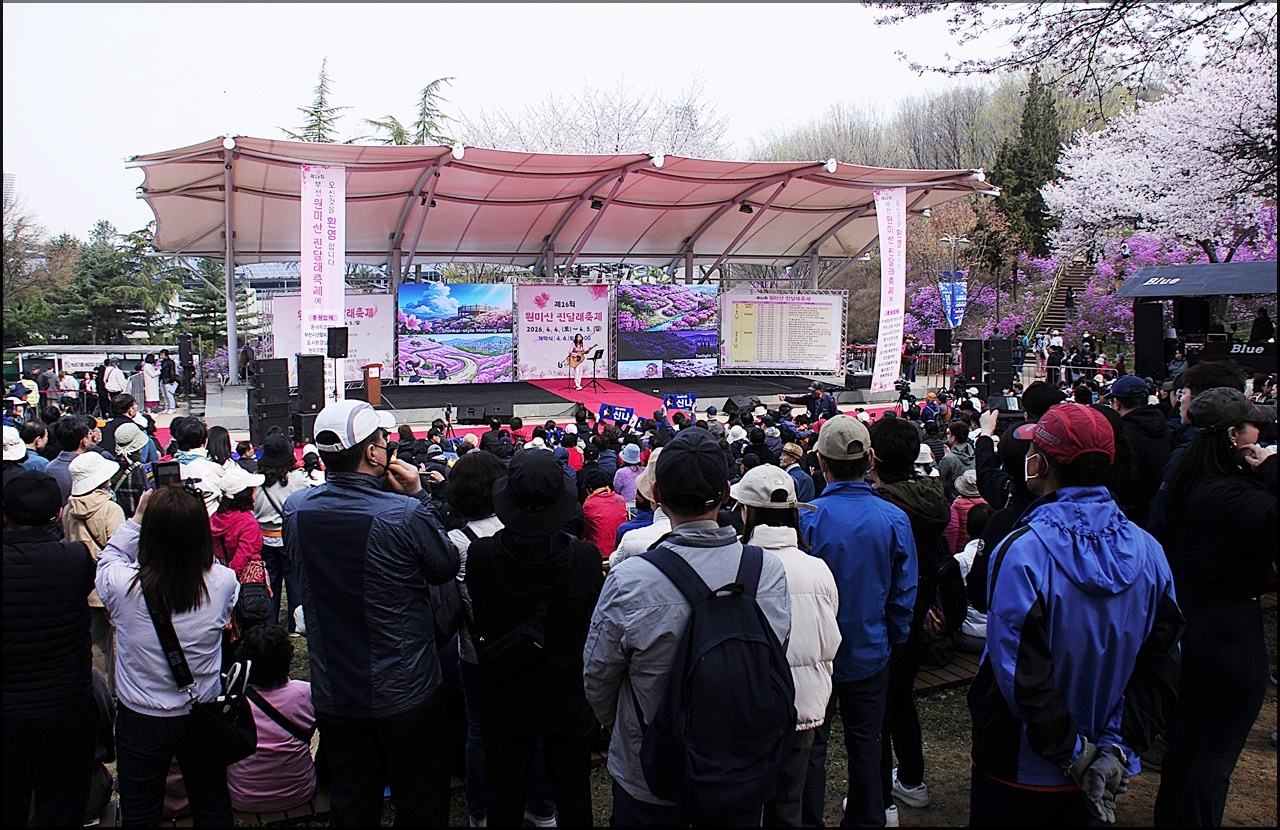 진달래 축재 현장으로 빼곡하게 자리한 관객들 빈틈이 없다.