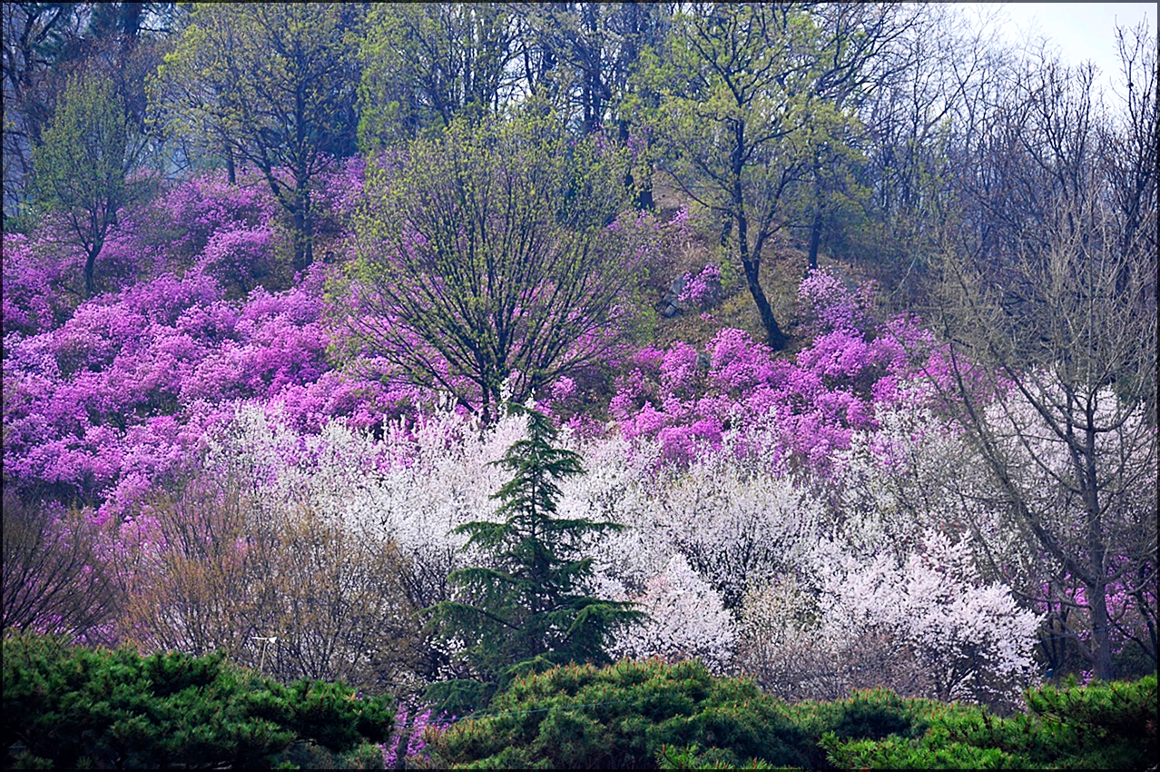 흘러내리며 꽃을 피운 개나리가 장관을 이룬다.